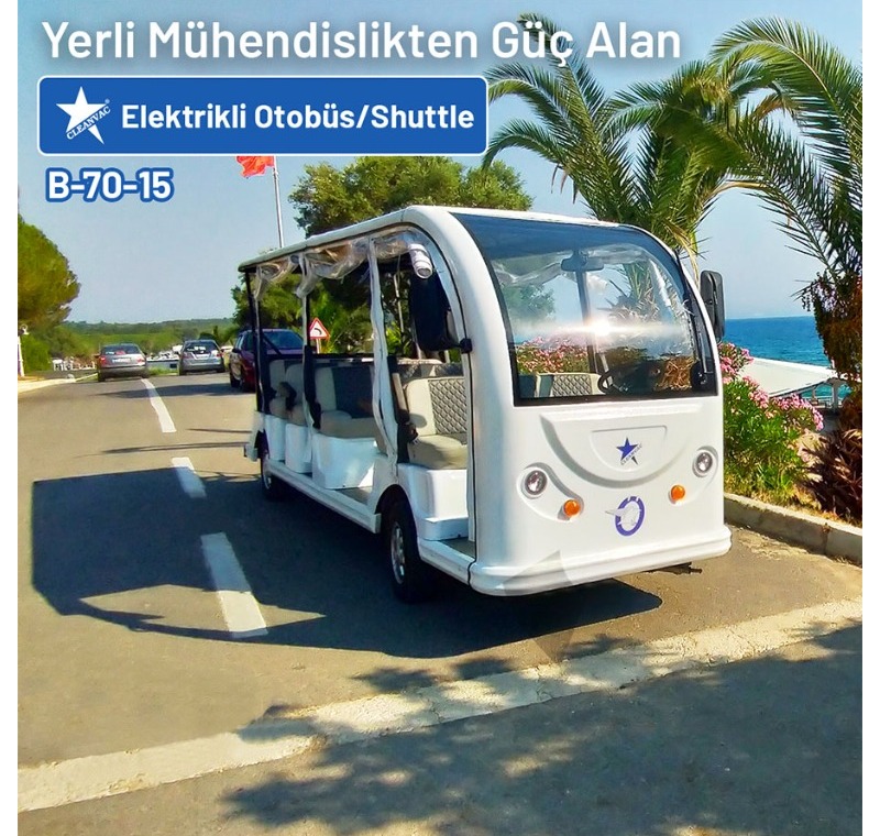 Yüksek yolcu kapasitesi (15 kişi), güçlü 7.5 kW motoru ve yerli üretimin ekonomik avantajları ile trafiğe kapalı büyük alanlarda toplu taşımacılık için ideal çözümdür.