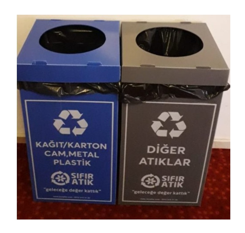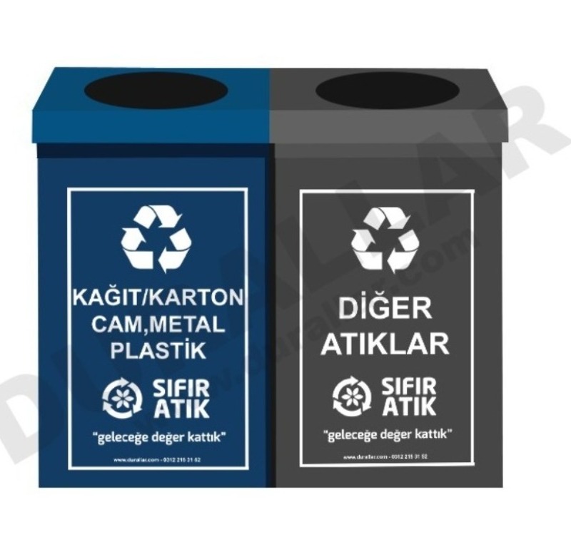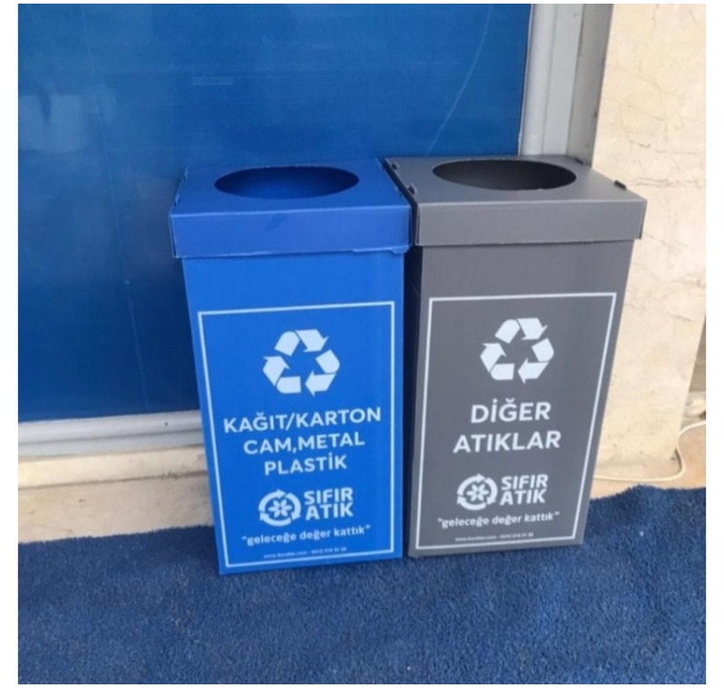 Resmî Proje Standartlarına Uyum: 2 li Sıfır Atık Kutuları, T.C. Çevre, Şehircilik ve İklim Değişikliği Bakanlığının belirlediği Sıfır Atık Projesi renk skalasına ve atık isimlerine uygun olarak üretilmiştir.