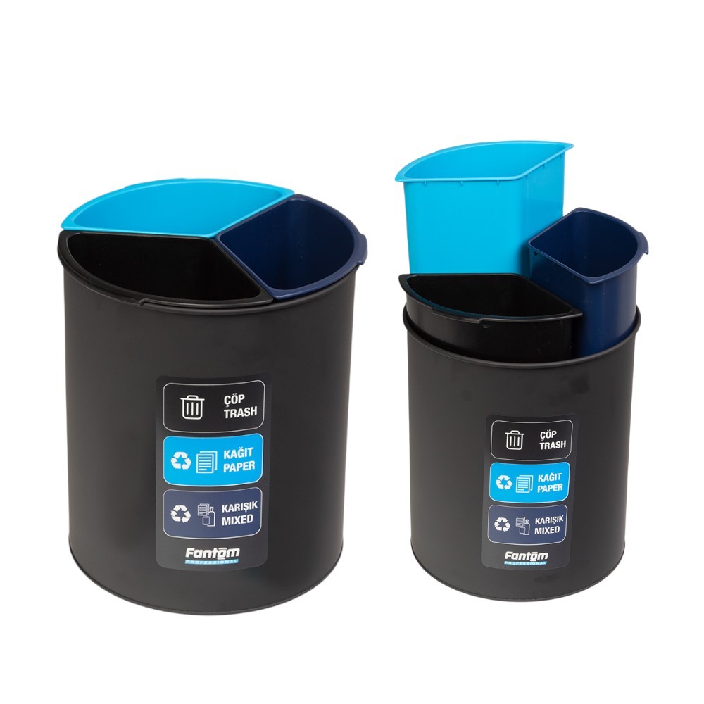 Roomcycle 33, 3 lü masa altı çöp kovası en uygun fiyatlarla! Çöp ve kağıt ile Karışık ayrıştırma için ideal, otel, hastane ve ofis kullanımına uygun ergonomik tasarım.