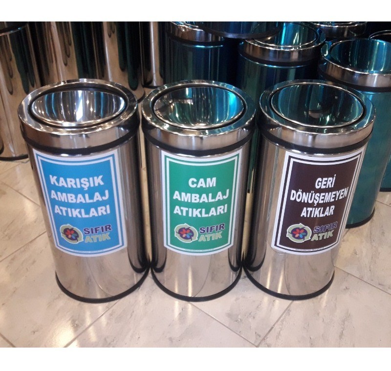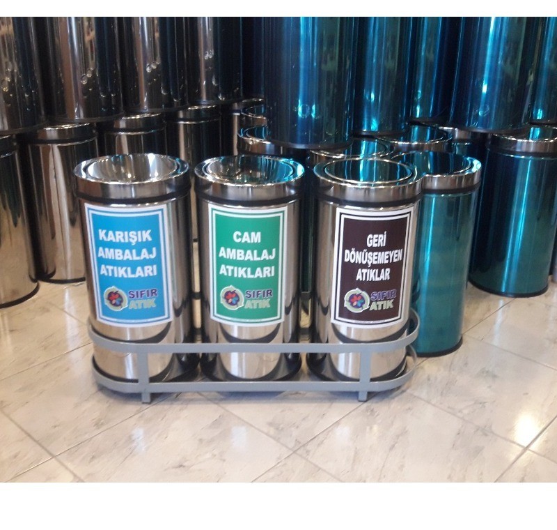 3 lü Paslanmaz Geri Dönüşüm Kutusu uygulama resimlerine ve sıfır atık örnek resimlerine ulaşabilirsiniz.