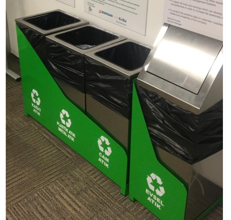 3 lü geri dönüşüm atık kutusu uygulama resimlerine ve sıfır atık örnek resimlerine ulaşabilirsiniz.