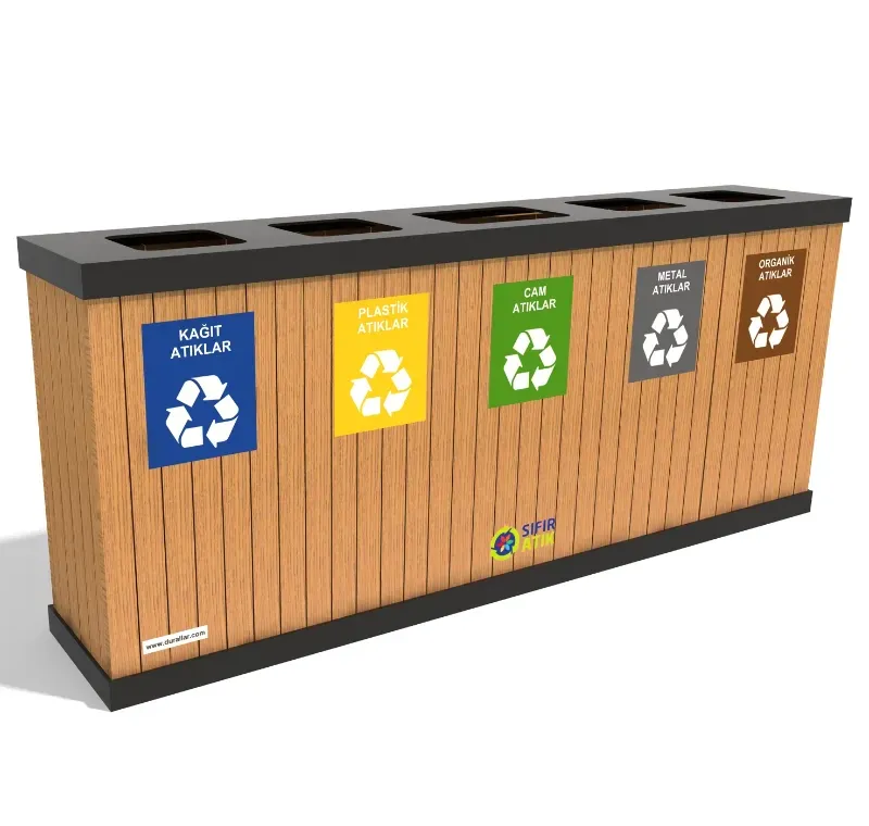 GDK-5087 modeli, ahşap ve metal kombinasyonu ile geri dönüşüm projelerinizde hem şık hem dayanıklı bir çözüm sunar.En uygun fiyatlı 5 li Geri Dönüşüm Çöp Kovası modellerini görmek için bize ulaşın.