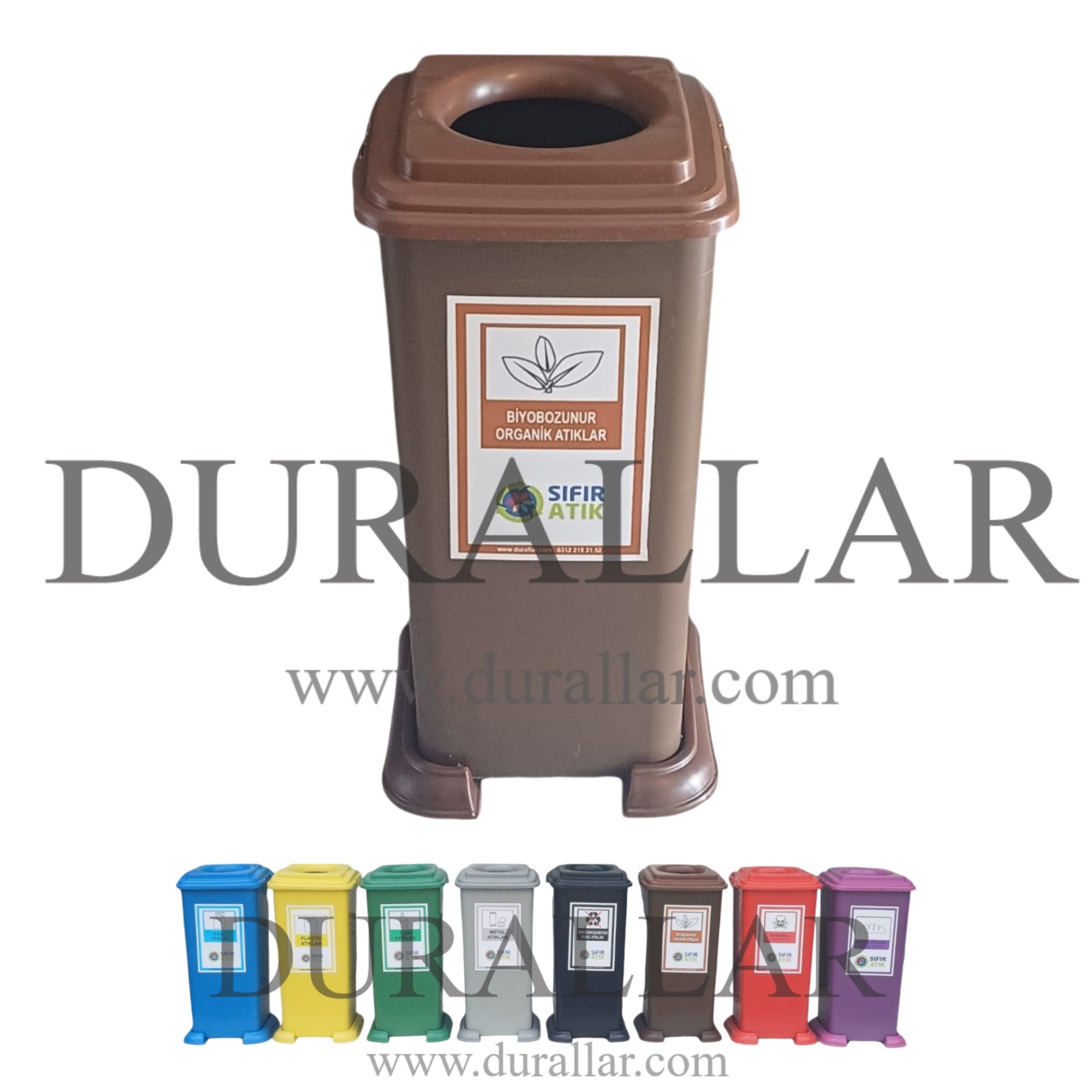 Biobozunur atıklar için üretilen kahverengi renk sıfır atık kutusu, darbelere ve dış etkenlere karşı dayanıklıdır. Hafif yapısı sayesinde kolay taşınabilir, aynı zamanda 70 litrelik geniş hacmiyle ofis, fabrika, okul, kamu kuruluşları ve hastane gibi alanlarda pratik kullanım sağlar.