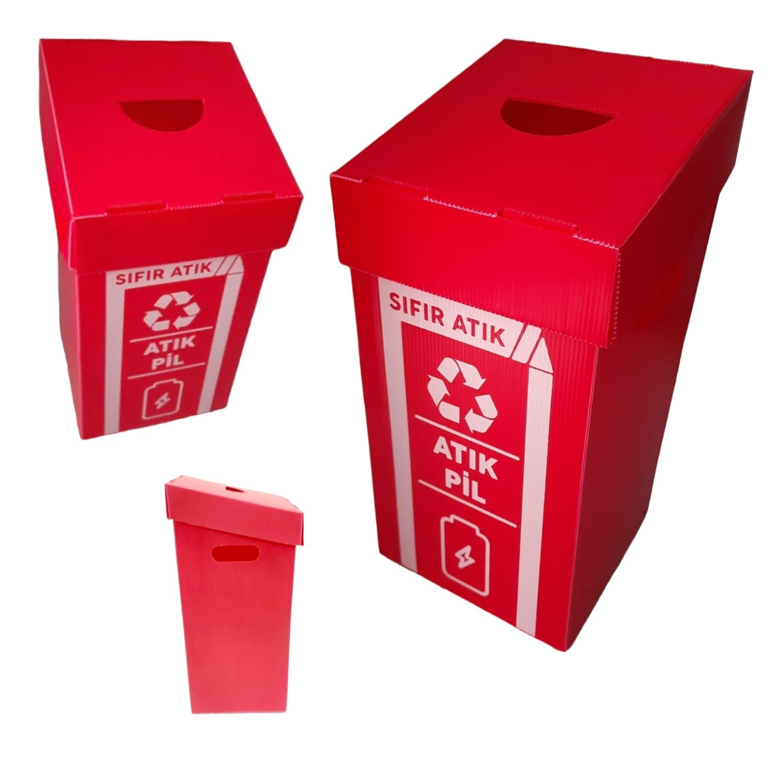 Atık pil kutusu modelleri, çevreye zarar veren pillerin güvenli şekilde toplanması için özel olarak üretilmiştir. Polipropilen (PP) oluklu levhadan imal edilen bu pil atık kolisi, uzun ömürlü ve hijyenik yapısıyla hem iş yerlerinde hem de okullarda tercih edilmektedir.