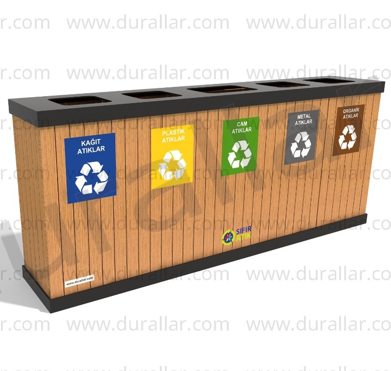 GDK-611-B atık ünitesi ahşap ve Geri dönüşüm çöp kutusu dış mekanda yere monte edilebilir yada seyyar şekilde imalati yapılır.Geri dönüşüm çöp kovasının ayakları yere çelik dübelle yada beton dökülerek monte edilebilir.Geri dönüşüm kovasının üzerinde sigara söndürmek için kapak opsiyonları bulunmaktadır.Geri dönüşüm kutusu genel ebatları olarak insanların isteyine göre imal edilir.Geri dönüşüm atık kovasının imalati sac,çelik,demir,galvaniz,paslanmaz,krom,ahşap olarak üretlir.Geri dönüşüm setinın iç kovaları 0,8 mm DKP sacdan üretilir.Metal geri dönüşüm kutusu tamamen 304 kalite paslanmaz çelikten üretilebilir.Ahşap geri dönüşüm kutusunun ahsapları 1.sınıf emprenyeli çam ağacı kullanılarak üretilebilir.Geri dönüşüm ünitesinin çöp hazneleri hareketli olanların içinde bulunan çöpler kolayca alınabilir.Geri dönüşüm kovası kova rengi ve ayak renkleri farklı olacak renkler insanlarin isteyine göre yapılır.Geri dönüşüm kutusu boyama şekli 200 derece de fırınlanan elektrostatik toz boyama sistemi ile boyanır.Atık kovasının kovaların ön ve arka yüüne Geri dönüşüm logosu ve uygun görülecek yazılar yazılabılır.