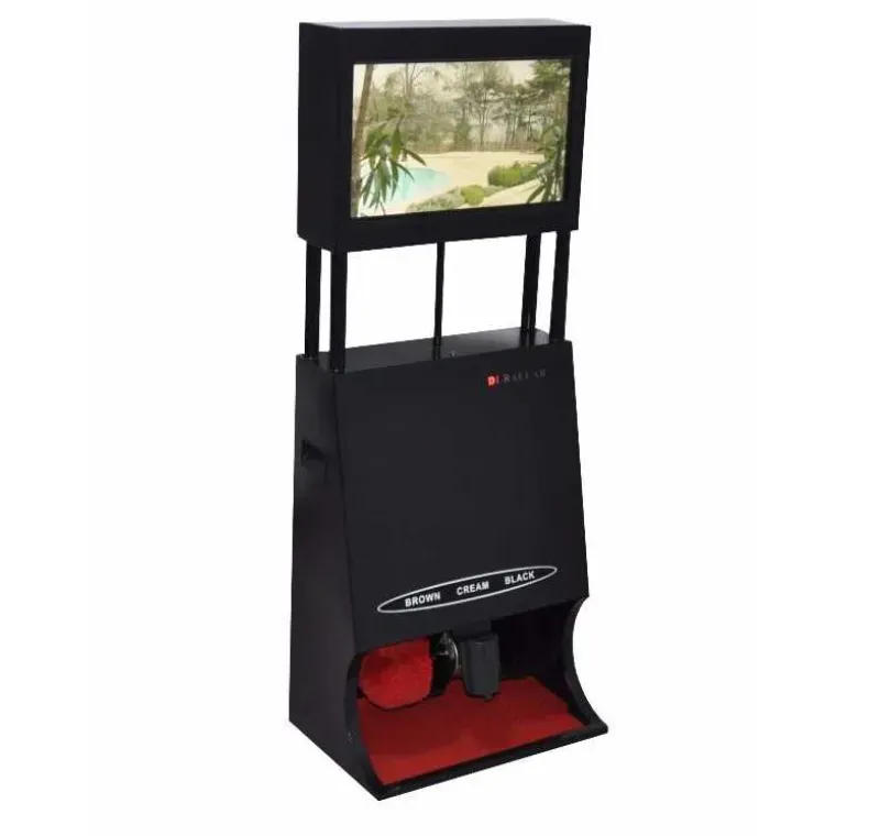 Acm-110 model ayakkabı cila makinası müşteri talebine göre değişik ölçülerde ve değişik renklerde tasarlanabilen bir ayakkabi cila makinası modeliidir.Üst kısmında bulunan tv müşteri talebine göre daha büyük takılabilir.Belirtilen fiyat 22 inc tv ile geçerlidir.Üst kısımda bulunan ekrandan video yada televizyon yayını yapılabilir.Ayakkabı cila makinası özelliğinin yanında mükemmel bir reklam gösterim aracıdır.Ayakkabısını temizlemek ve cilalamak için gelen kişilere,reklam ile verilmek istenen mesajı direk olarak vermektedir.İnsanlar ayakkabılarını temizledikleri süre boyunca sergilenen reklamı direk olarak almaktadır.Bu özelliği ile alışveriş merkezi ve dinlenme tesislerinde kullanımı çok yaygındır.Market ve restoran gibi mekanlarda birden çok ürün ve hizmeti sergileme imkanı bulunmaktadır.Usb ile ekrana yansılıtan video ile ürün yada kurum reklamı yapılabilir.Ayakkabı cila makinası fotoselli olarak çalışmaktadır.Komple metal kasalıdır.Ayağınızı uzattığınız zaman otomatik olarak çalışmaktadır.Orta bölümde bulunan cila deposuna ayakkabınızı hafifçe bastırdığınız zaman ayakkabınızın üzerine birkaç damla cila gelir.Bu şekilde ayakkabınızı fırçalayarak parlatabilirsiniz.İthalatını firmamızın yaptığı ayakkabı cila makinelerimiz üretim hatalarına karşı 2 sene garantilidir.Ayakkabı cila makinamıza ilişkin yedek ayakkabı parlatma fırçası,fırça motoru,cila deposu,elektronik kart,ön plastik çıta gibi her türlü yedek parça firmamızda mevcuttur.Ayakkabı cila makinaları ile birlikte 150 Ml ayakkabı cilası hediye olarak verilmektedir.Daha sonra ihtiyacınız oldukça ayakkabı cila makinası için sıvı cilasını 1 lt lik şişelerde firmamızdan temin edebilirsiniz.Türkiye’nin her noktasına kargo ile ayakkabı cilalama makinası sevk edilmektedir.