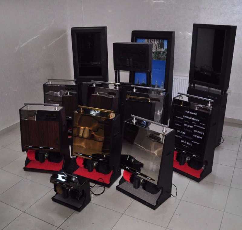 Otel tipi ayakkabı cilalama makinası : Otel, Polisevi, Orduevi, Konukevi, Misafirhane gibi mekanların girişinde kullanılır.