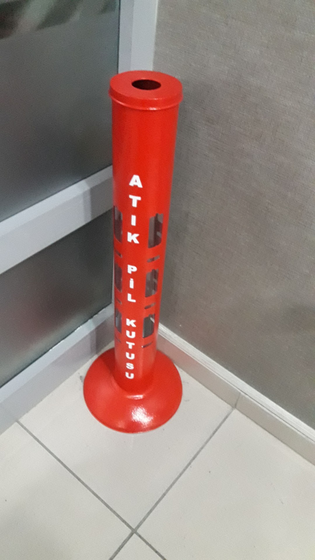 Ürün Adı: APK-600 Ayaklı Pil Atık Kutusu Kova Ölçüsü: h:81 cm Ø:26 cm Kapasite: 6 Litre Kova Malzemesi: Elektrostatik Boyalı Boru + Plexi Kapak Malzemesi: Paslanmaz Çelik Tasarım: Ayaklı, boru tipi