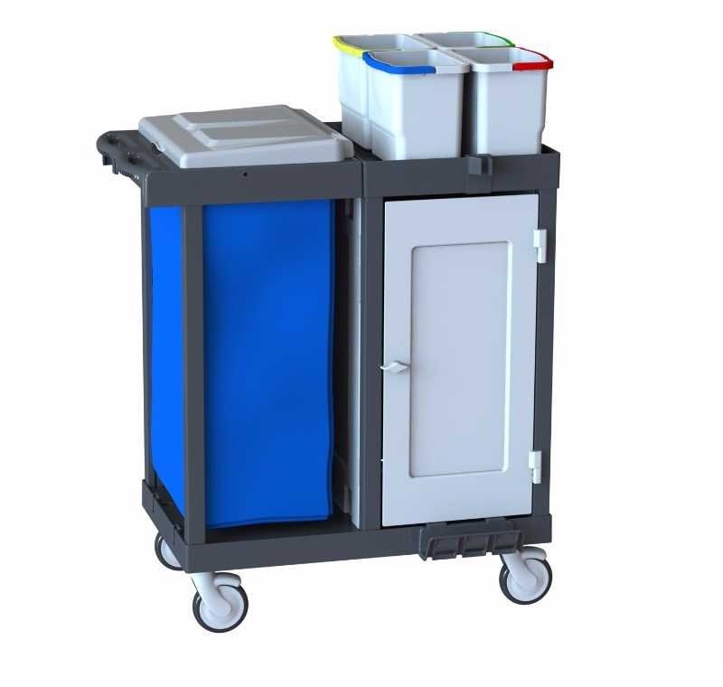 Dolaplı Plastik Temizlik Arabası, otel, hastane, AVM, okul ve resmî kurumlarda temizlik ekipmanlarının düzenli taşınmasını sağlayan dayanıklı ve pratik bir temizlik sistemidir. Staff Kat arabaları, kapalı çöp toplama bölümü ile personelin işini kolaylaştırır.