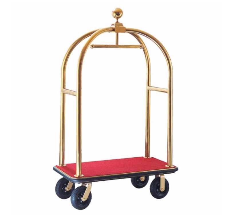 BTA-201 otel bavul valiz taşıma arabası, lüks otellerin prestijine uygun olarak tasarlanmış şık bir modeldir. Bronz titanyum gold kaplama iskeleti, halıfleks kaplı MDF zemini ve sessiz kauçuk tekerlekleri sayesinde hem işlevsel hem de estetik bir kullanım sunar.
