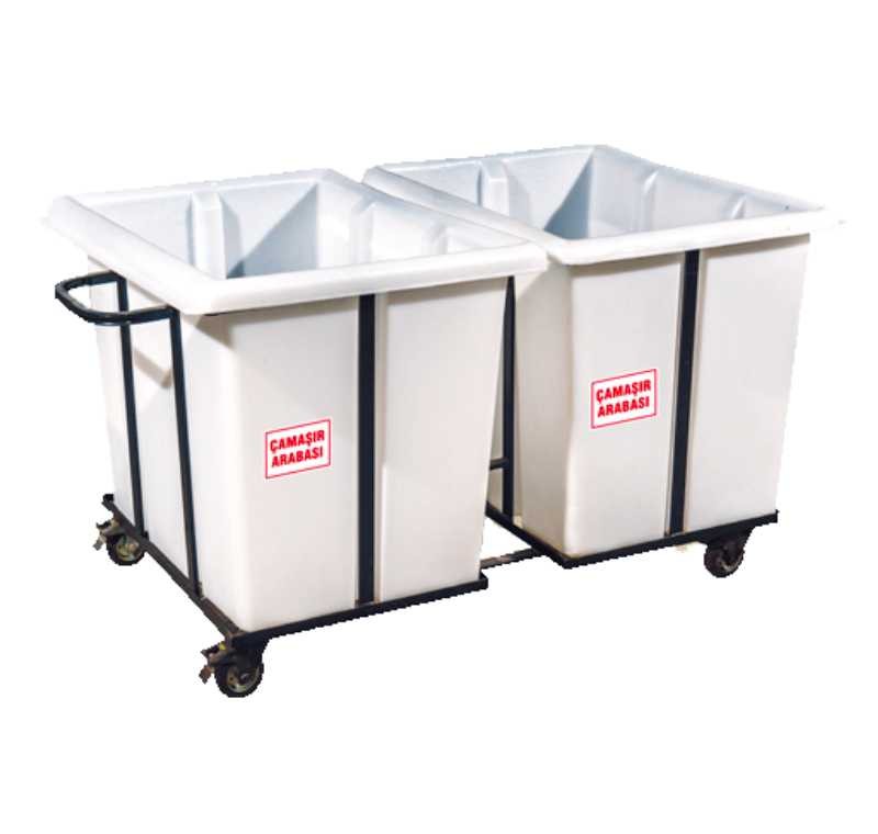 -Kapaklı çamaşır toplama arabası kapasitesi 2 x 250 Lt olup ölçüleri 76 x 132 x 87 cm dir.