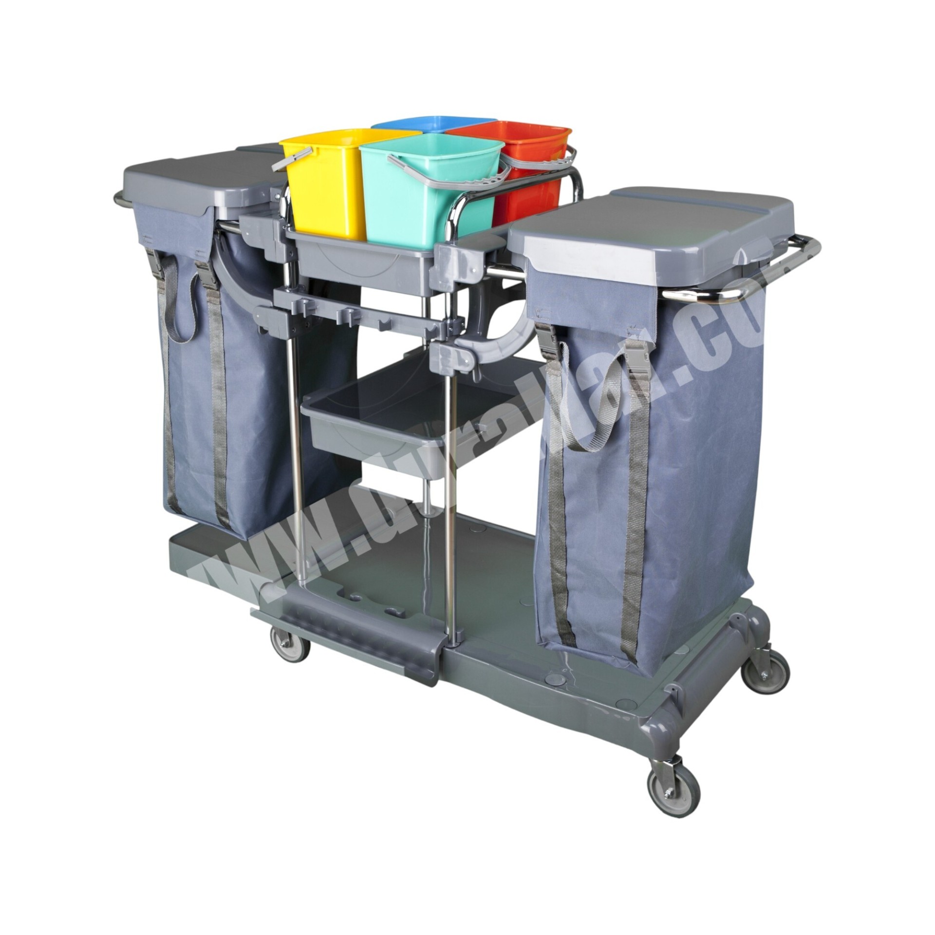 Temizlik arabası en uygun fiyatlarla! MTA-441 temizlik arabası, otel, hastane ve AVM’ler için üretilmiş çift kovalı, çöp bölmeli ve hijyenik temizlik kat arabasıdır.