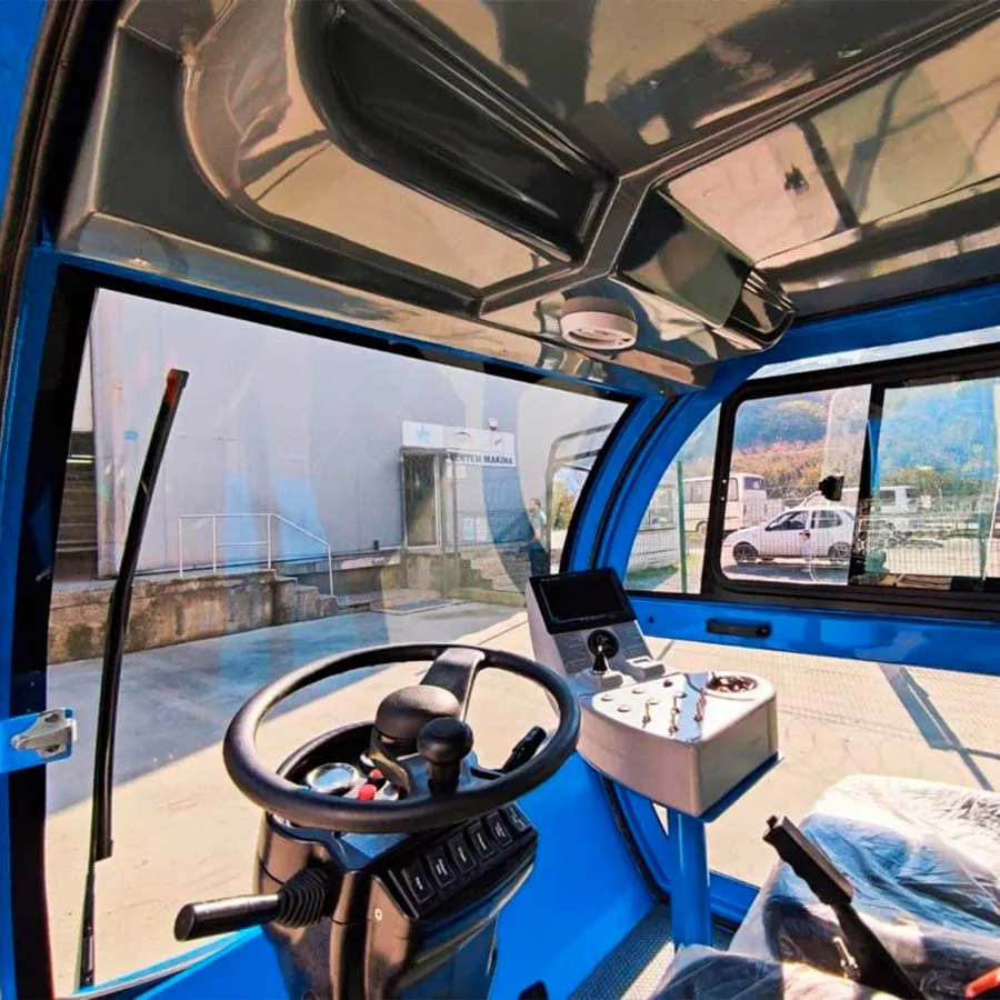 Profesyonel bir sokak süpürme aracı sadece güçlü değil, aynı zamanda güvenli olmalıdır. HC 1000, operatör konforunu en üst seviyede tutacak donanımlarla gelir: