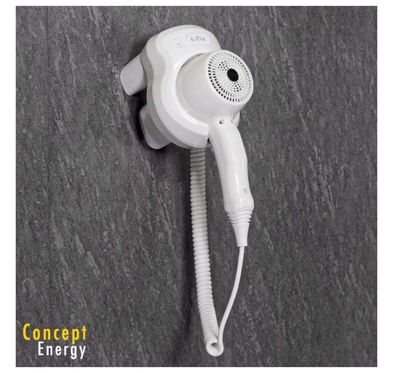 Concept Compact Energy Traş Prizli Otel Tipi Saç Kurutucu, kompakt tasarımı ve şık görünümü ile oteller için ideal bir çözümdür. Duvara monte edilen yapısı, banyolarda düzenli ve estetik bir görünüm sağlar. Askı üzerindeki traş makinesi prizi sayesinde misafirler, elektrik prizi olmayan banyolarda traş makinesi veya diğer elektrikli aletlerini rahatlıkla kullanabilir. DC motoru ve termostat korumalı rezistansı ile güvenli ve uzun ömürlü kullanım sağlar.
