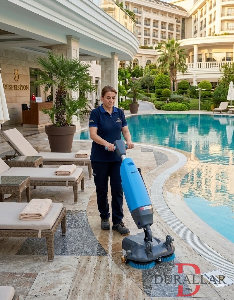 Clean Bsc 42 ile dar alanlarda hızlı ve etkili temizlik! Bu Akülü Dar Alan Sert Zemin Temizleme Makinesi, oteller, okullar ve ofisler için ideal. Epoksi, mermer, beton ve fayans zeminlerde yüksek performans sunar.