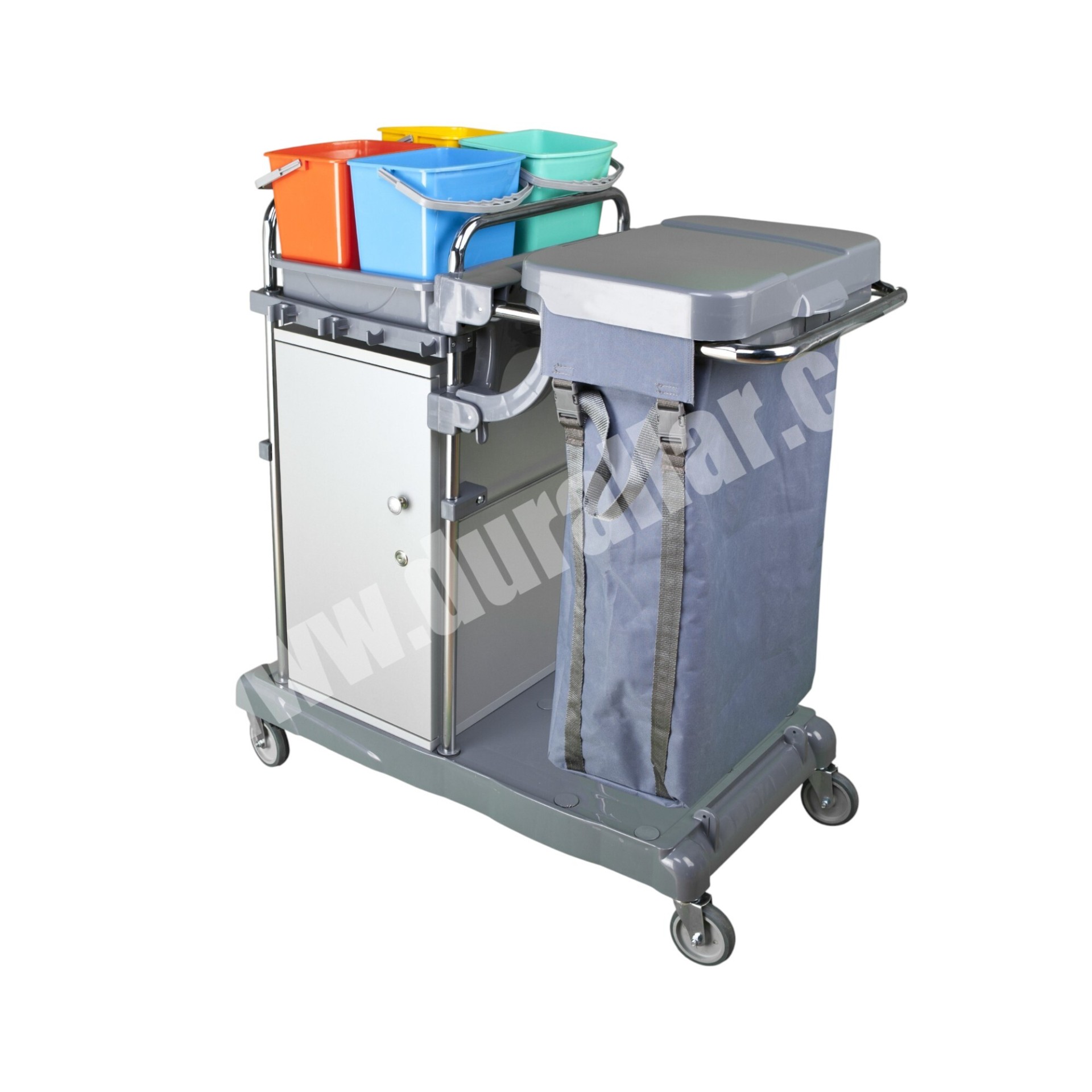 Temizlik arabası en uygun fiyatlarla! MTA-441 temizlik arabası, otel, hastane ve AVM’ler için üretilmiş çift kovalı, çöp bölmeli ve hijyenik temizlik kat arabasıdır.