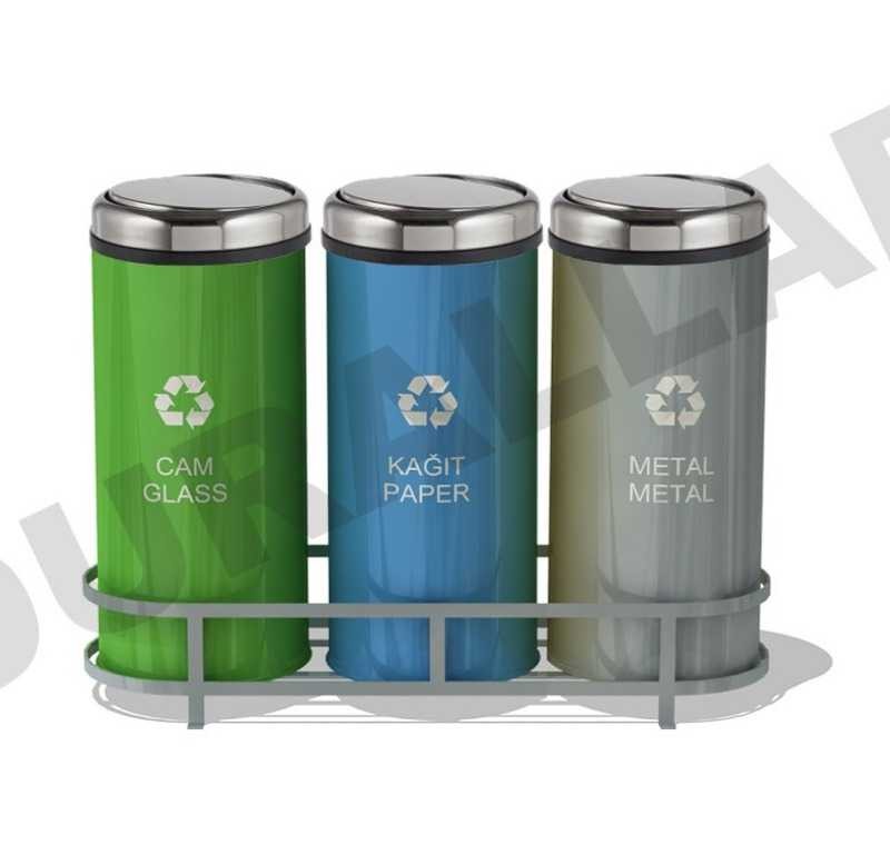 Ofis, okul ve ev kullanımı için özel olarak tasarlanmış 3’lü Sıfır Atık Kutusu Gdk-3011, toplam 135 L hacmi ile geri dönüşüm süreçlerinizi kolaylaştırır. Paslanmaz çelik döner kapak, elektrostatik boyalı DKP saç kova ve elektrostatik boyalı lama demir alt baza ile dayanıklı ve uzun ömürlü bir tasarım sunar.