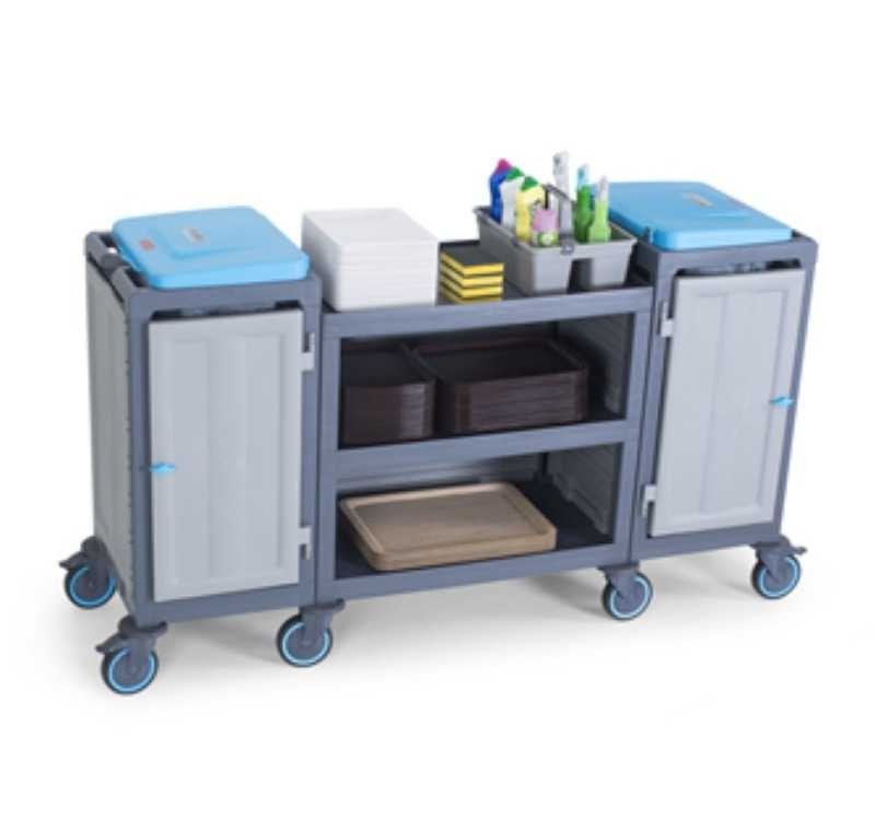 Plastik Servis Arabası, restoran ve otellerde servis hizmetlerinde kullanılan son derece pratik ve kullanışlı bir üründür.İsteğe bağlı olarak çöp sıyırma kovası ve çatal bıçak kovası da takılabilir.