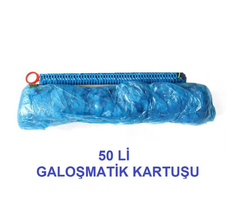 Galoşmatik Galoşu, topuktan çekmeli tüm galoşmatik cihazları için tasarlanmıştır. Bu galoşlar, Gls-001 galoşmatik, Gls-002 galoşmatik, Gls-004 galoşmatik ve İnter L Tipi Galoşmatik modelleriyle tam uyumludur.Galoşmatik galoşu 50 li kartuş şeklinde tasarlanmıştır.Yerli üretim galoşmatik galoşları, yüksek kalite orijinal hammadde plastikten üretilmektedir.Galoşmatik galoşu, güçlendirilmiş yapısı sayesinde aşınmaya dayanıklı, sıvı ve toz geçirmez bir kullanım imkanı sunar. Ultrasonic dikiş teknolojisi ile takviyeli ikili örme lastik tasarımına sahip olan galoşmatik galoşları, tüm ayakkabı numaralarına uyumludur. Standart mavi renk ile üretilen ürün, toptan özel siparişlerde farklı renklerde de üretilebilir.