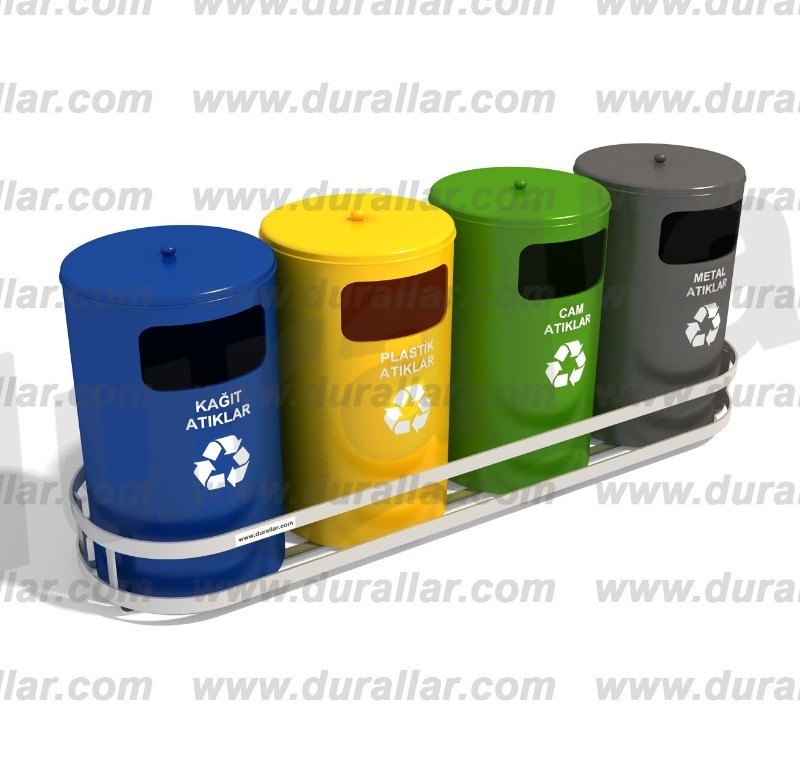 100 Litre kapasiteli 4 lü Geri Dönüşüm Atık Seti, elektrostatik boyalı DKP saç ve 430 kalite paslanmaz çelik ile üretilmiş dayanıklı sıfır atık kutusu 4 lü.