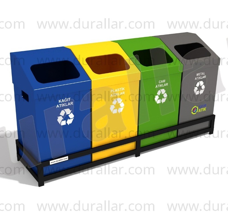 Fabrika, atölye ve AVM’ler için ideal Sıfır Atık Kutusu 4 lü, renkli ayrıştırma sistemi ve elektrostatik boyalı DKP saç malzemesi ile sıfır atık projelerine uygundur.