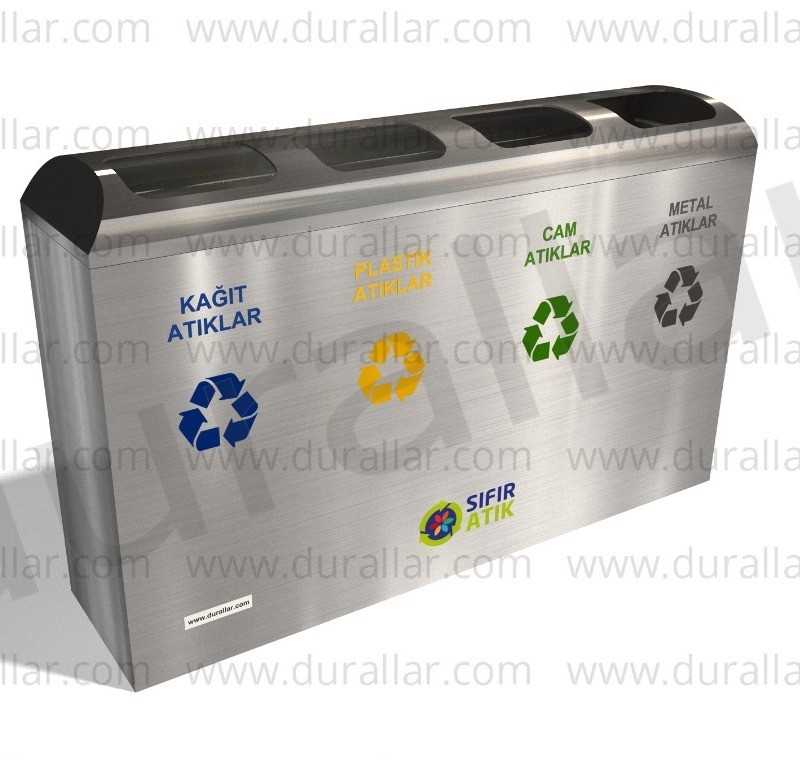 Fabrika, atölye ve AVM’ler için ideal Sıfır Atık Kutusu 4 lü, renkli ayrıştırma sistemi ve elektrostatik boyalı DKP saç malzemesi ile sıfır atık projelerine uygundur.