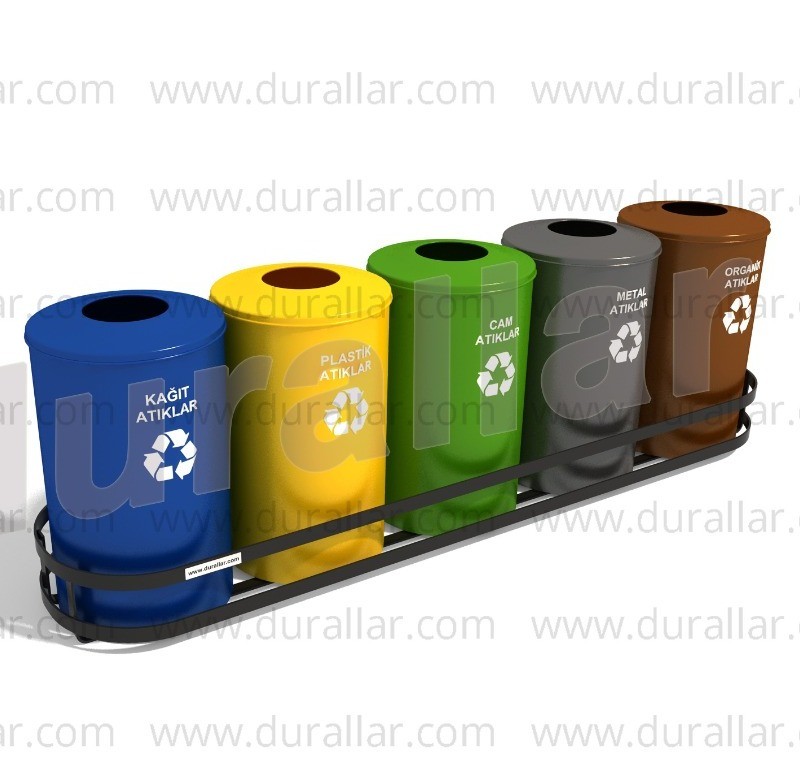 GDK-5018 5’li Sıfır Atık Kutusu, kurumlar, belediyeler ve büyük işletmeler için özel olarak tasarlanmıştır. Geri dönüşüm kovası olarak 5’li set halinde sunulan bu model, 300 L toplam hacmi ile yüksek kapasiteli atık toplama sağlar. Sıfır Atık Projesi kapsamında tasarlanmış olup, renk kodlu bölmeleri ile atık ayrıştırmayı kolaylaştırır.