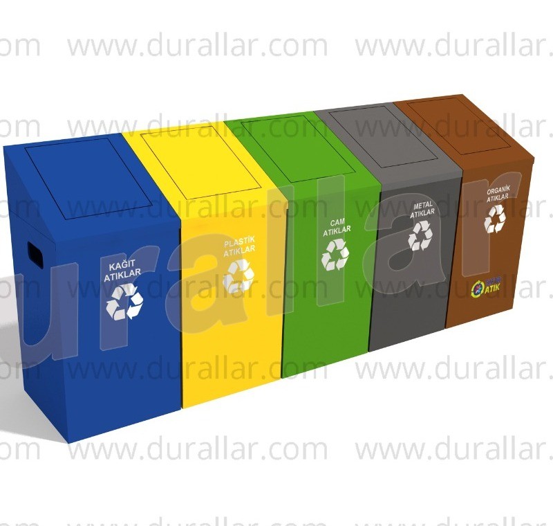 Sıfır Atık Projesine uygun GDK-5010 5’li sıfır atık kutusu modelleriyle çevreye duyarlı, düzenli ve estetik bir çözüm sağlayın. Farklı renk, etiket ve tasarım seçenekleriyle üretim mümkündür.