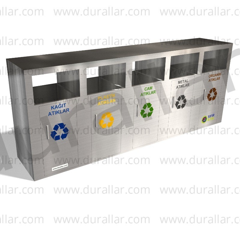 GDK-5022 5’li Sıfır Atık Geri Dönüşüm Kutusu, elektrostatik boyalı DKP saçtan üretilmiş dayanıklı ve estetik bir çözümdür.