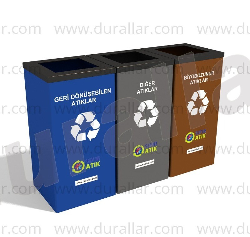 Gdk-3083 3’lü Sıfır Atık Geri Dönüşüm Kutuları, 162 Litre kapasite, elektrostatik boyalı DKP saç ile dayanıklı ve çevre dostu geri dönüşüm çözümü sunar.