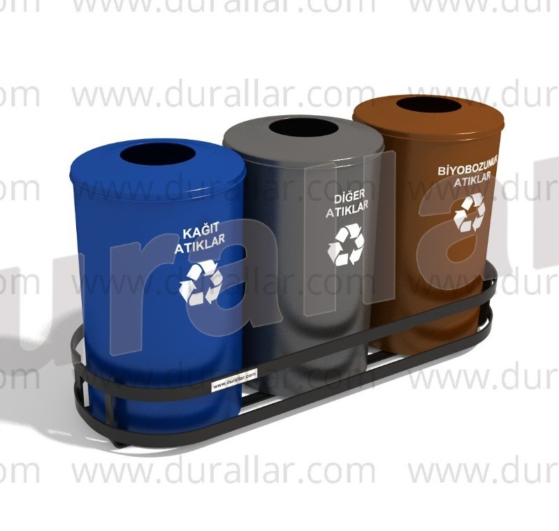 Gdk-3034 B 3’lü Sıfır Atık Kovaları ile geri dönüşümü kolaylaştırın. 288 L kapasite, elektrostatik boyalı DKP saç kova ve kapak, elektrostatik boyalı lama demiri alt baza ile dayanıklı ve uygun fiyatlı çevre dostu çözüm.
