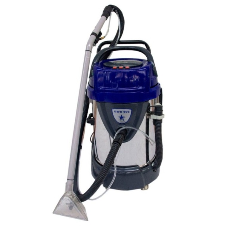 3600 watt gücünde vakum motoru ile çok yüksek bir vakum gücüne sahip olan EWD 803 halı ve koltuk yıkama makinesi, aynı zamanda güçlü su püskürtme pompası ile derinlemesine halı ve koltuk yıkamada işin uzmanı kaliteli bir makinadır.