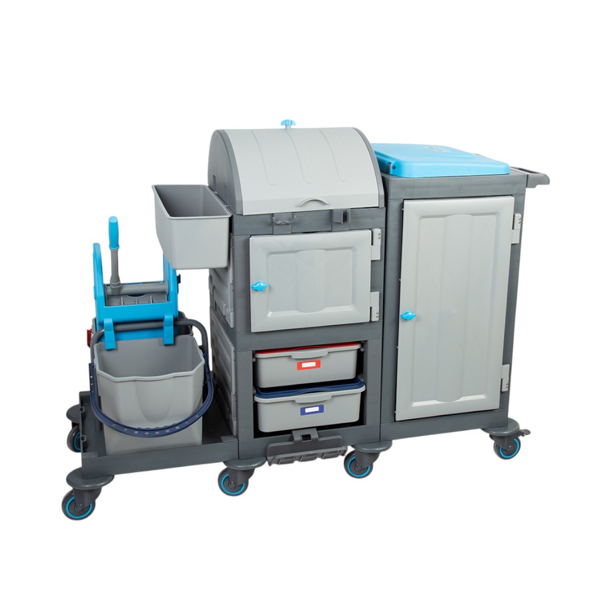 Procart 1363 hastane temizlik arabası, sağlık kuruluşlarında tıbbi malzeme taşınması ve atıkların toplanması için geliştirilmiş profesyonel bir temizlik ekipmanıdır. Ergonomik yapısı ve modüler tasarımı ile iş süreçlerini kolaylaştırır, hijyen ve düzen sağlar.