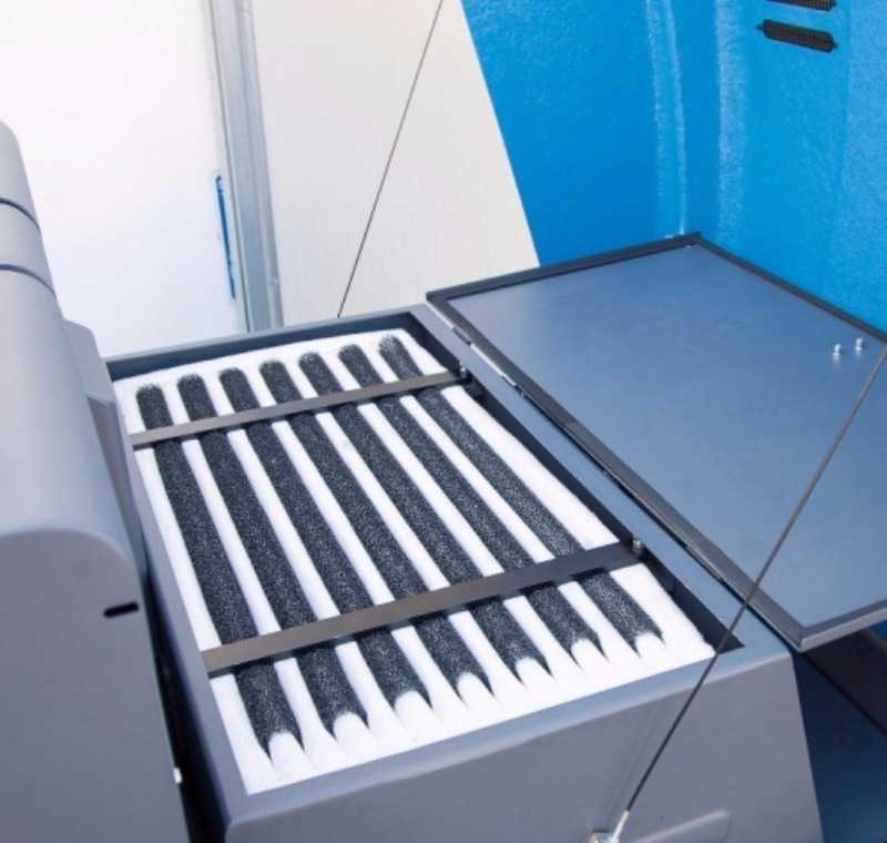 * ISAL PB 160 D model Dizel Yol süpürücüde Mikrofiber Green Cep Filtre ve Sulu Sistem Toz Kontrol Ünitesi isteğe bağlı extra olarak takılabilir.