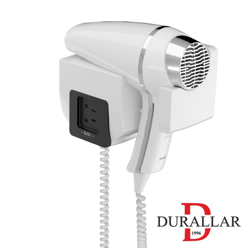 Duvara veya çekmece içine monte edilebilen bu otel tipi saç kurutma makinesi, otel banyolarına şıklık ve düzen katar. Ergonomik tasarımı ve profesyonel performansıyla misafir memnuniyetini artırır.