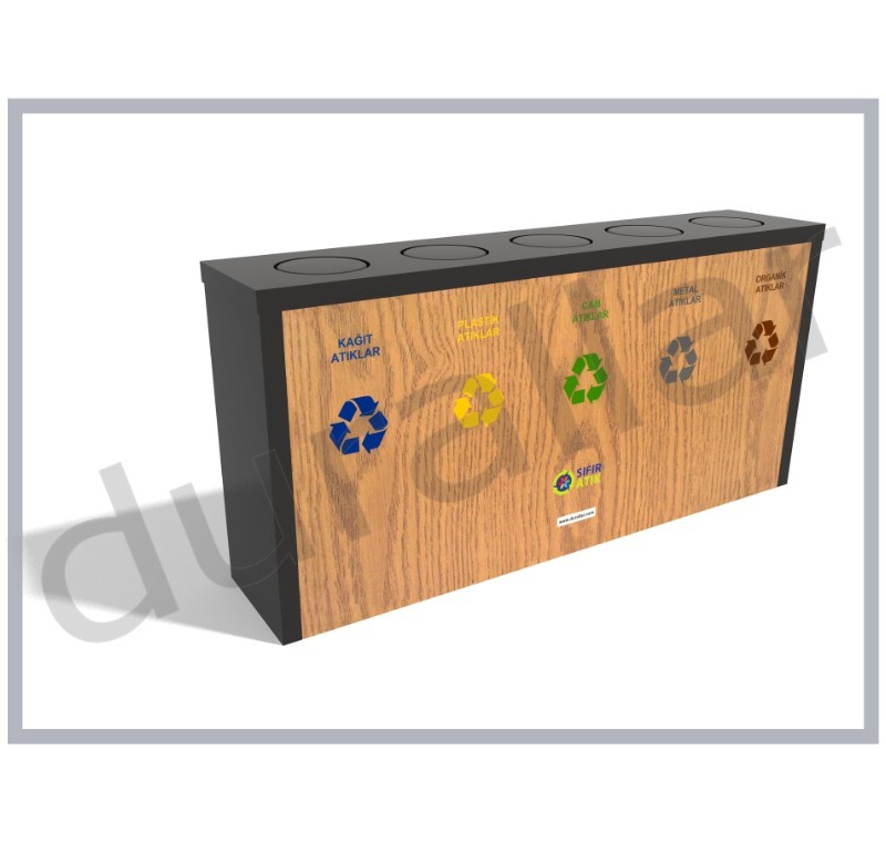 GDK-5086 Kağıt Geri Dönüşüm Kutusu Paslanmaz ve geri dönüşüm kutusu dış mekanda yere monte edilebilir yada seyyar şekilde imalati yapılır.Geri dönüşüm çöp kovasının ayakları yere çelik dübelle yada beton dökülerek monte edilebilir.Geri dönüşüm kovasının üzerinde sigara söndürmek için kapak opsiyonları bulunmaktadır.Geri dönüşüm kutusu genel ebatları olarak insanların isteyine göre imal edilir.Geri dönüşüm atık kovasının imalati sac,çelik,demir,galvaniz,paslanmaz,krom,ahşap olarak üretlir.Geri dönüşüm setinın iç kovaları 0,8 mm DKP sacdan üretilir.Metal geri dönüşüm kutusu tamamen 304 kalite paslanmaz çelikten üretilebilir.Ahşap geri dönüşüm kutusunun ahsapları 1.sınıf emprenyeli çam ağacı kullanılarak üretilebilir.Geri dönüşüm ünitesinin çöp hazneleri hareketli olanların içinde bulunan çöpler kolayca alınabilir.Geri dönüşüm kovası kova rengi ve ayak renkleri farklı olacak renkler insanlarin isteyine göre yapılır.Geri dönüşüm kutusu boyama şekli 200 derece de fırınlanan elektrostatik toz boyama sistemi ile boyanır.Atık kovasının kovaların ön ve arka yüüne Geri dönüşüm logosu ve uygun görülecek yazılar yazılabılır.