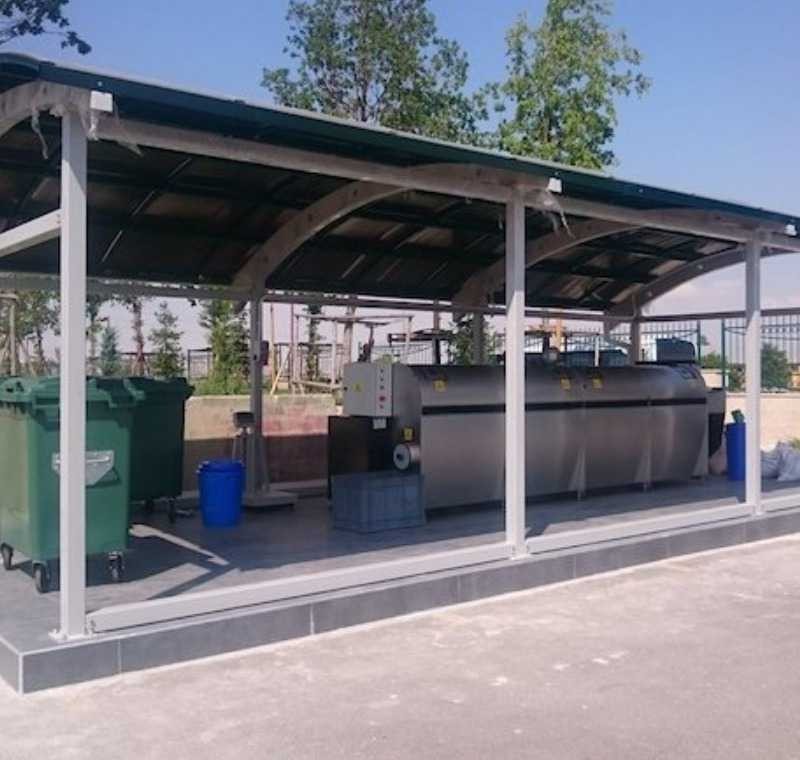 Haftalık 700 Lt kapasiteli % 100 yerli üretim kompost cihazında kompostlaştırma işlemi, yükleme, kompostlaştırma ve olgunlaştırma olmak üzere 3 aşamadan oluşmaktadır. Kompost makinesinde atıkların beslenmesi için tasarlanan bir yükleme haznesi bulunmaktadır.Atık yükleme haznesinde parçalanan ve talaş veya başka bir karbonlayıcı ile karıştırılan organik atıklar, öncelikli olarak kompostlaştırma haznesine aktarılmaktadır.Kompostlaştırma haznesinde gerekli süreci tamamladıktan sonra olgunlaştırma haznesine aktarılan yarı mamul ürün bu haznedeki bekleme süresini tamamladıktan sonra kullanılabilir hale gelmektedir.