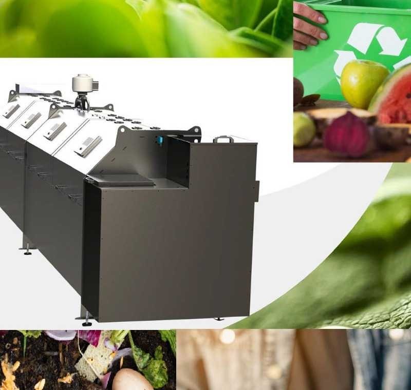 Yemek öncesi oluşan organik gıda atıklarının (patates kabuğu, soğan kabuğu, domates, biber, meyve vb.) kompost (toprak şartlandırıcı-iyileştirici) şekline dönüşümünü sağlayan ve biyobozunur atıkların organik komposta dönüşmesini sağlayan makine 4 ana bölümden oluşmaktadır.