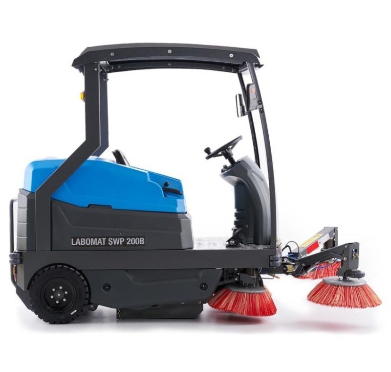 Labomat SWP 200 B binicili akülü zemin süpürücü,araç trafiğine kapalı olan iç ve dış alanlarda zeminlerin süpürülmesi amacıyla kullanılmaktadır.