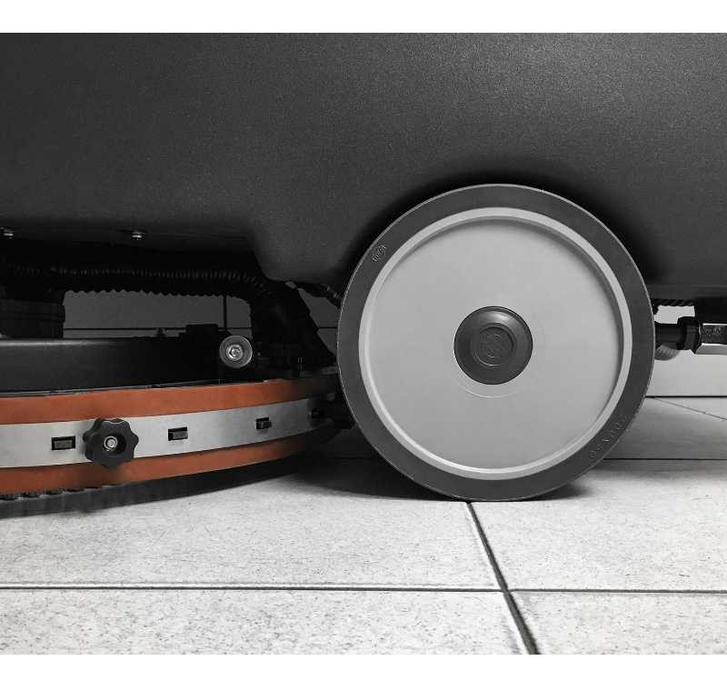 Deterjanlı suyu zemine uygulayıp fırçalama işlemi yapar; ardından sıyırıcı aparatı sayesinde kirli suyu toplayarak zemini tamamen kurutur.