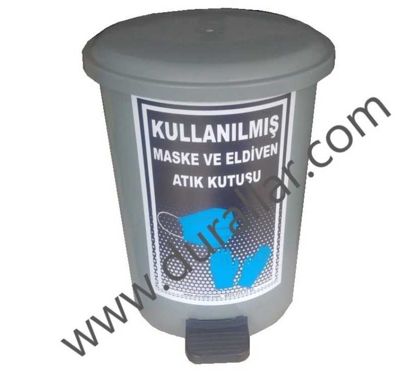 Sadece kulanılmış maske, eldiven ve kişisel hijyen atıklar için etiketli olarak hazırlanmış; pedallı 40 Litre kapasiteli atık kovasıdır.