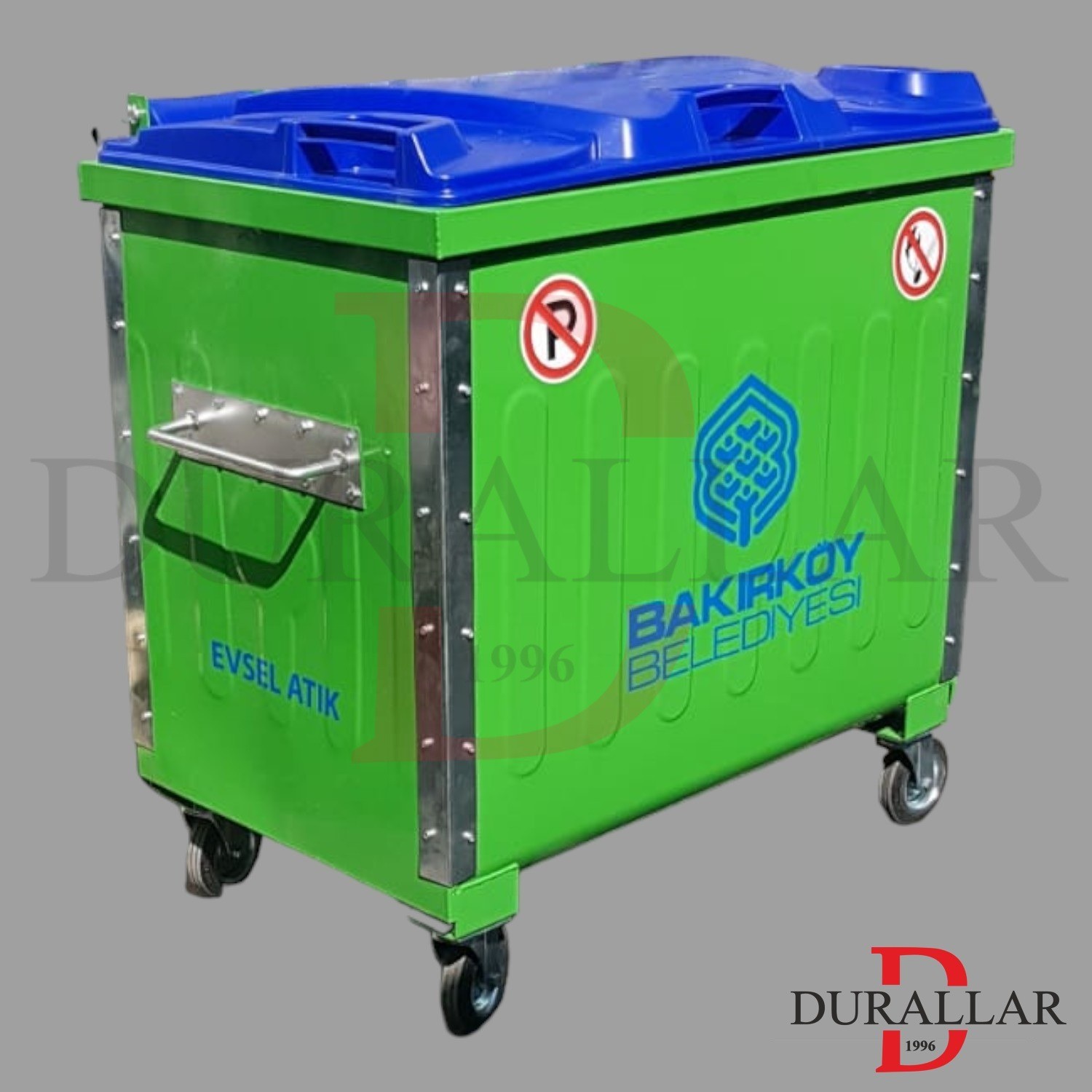800 litre galvaniz çöp konteyneri 1,2 mm kalınlıkta A-1 kalite galvaniz saçtan üretilmiştir.