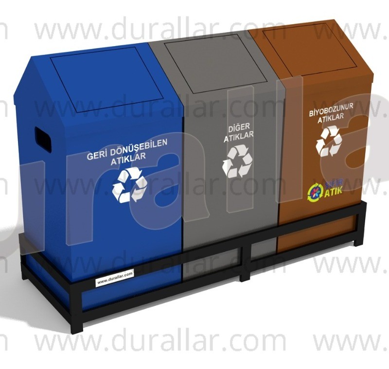 Gdk-3035 B 3’lü Sıfır Atık Kutuları ile geri dönüşümü kolaylaştırın. 162 L kapasite, elektrostatik boyalı DKP saç kova ve kapak, elektrostatik boyalı lama demiri alt baza ile dayanıklı ve uygun fiyatlı çevre dostu çözüm.