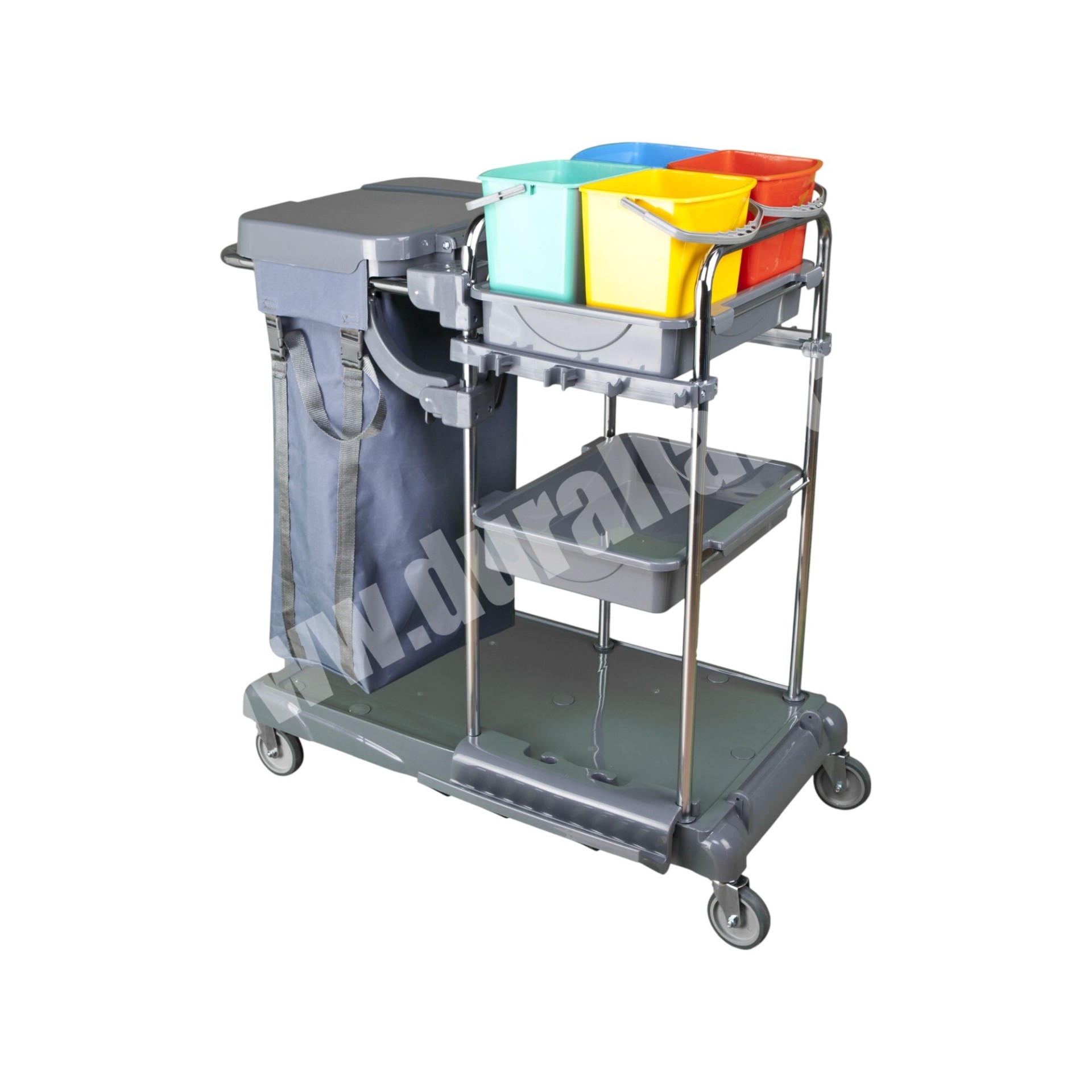 Temizlik arabası en uygun fiyatlarla! MTA-441 temizlik arabası, otel, hastane ve AVM’ler için üretilmiş çift kovalı, çöp bölmeli ve hijyenik temizlik kat arabasıdır.