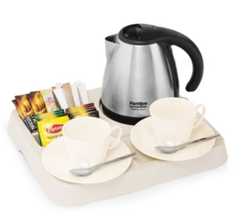 Otellerin odalarında misafirlerine çay, kahve ve su ikramında kullandıkları hoşgeldin tepsisi, modern ve estetik tasarımı, işlevselliğiyle tercihcihlerinde ilk sırada yer almaktadır. Gövdesi ABS olan ikram tepsisinde kettle, çay, kahve, şeker ve fincan bölmesi yer almaktadır.Siyah ve Beyaz renk seçeneği mevcuttur.