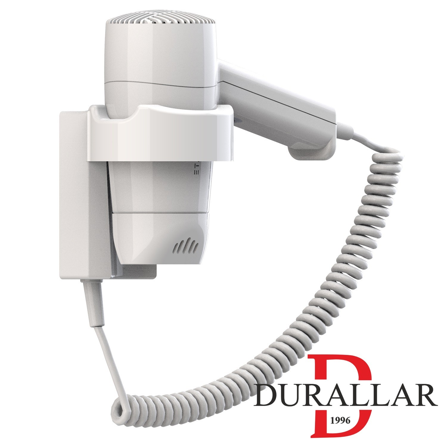 Otel Tipi Duvara Monte Saç Kurutma Makinesi, otel odaları için tasarlanmış dayanıklı ve şık bir modeldir. Duvara monte yapısı, spiral kablosu ve 1350W kurutma gücü ile uzun ömürlü kullanım sunar. Otel banyolarında hem estetik hem de pratik bir çözüm sağlar.