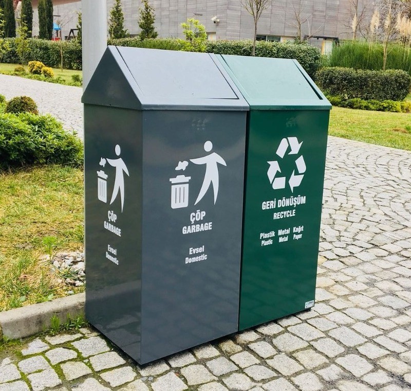 3 lü geri dönüşüm atık kutusu uygulama resimlerine ve sıfır atık örnek resimlerine ulaşabilirsiniz.