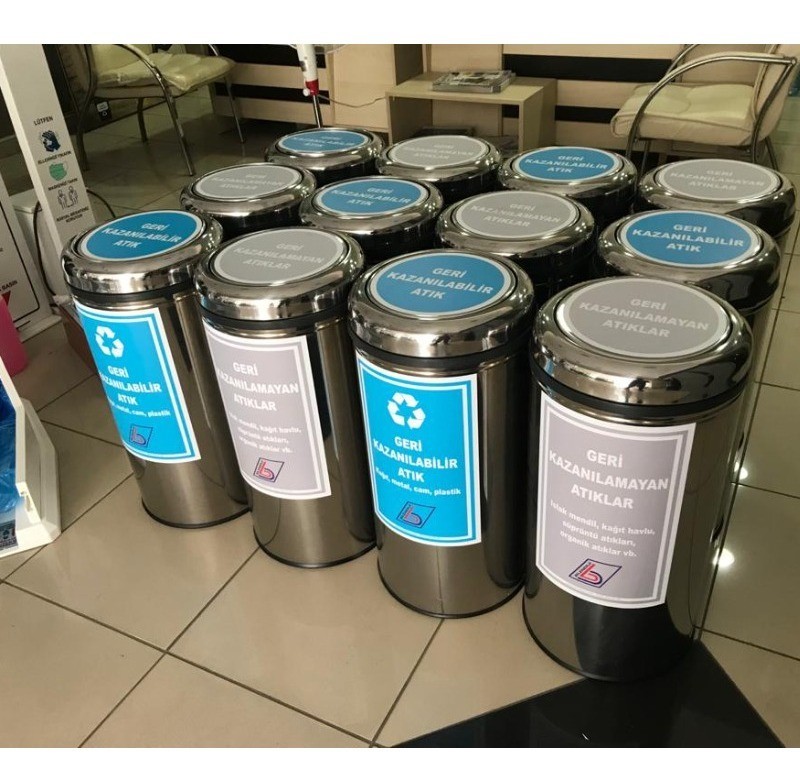 Paslanmaz geri dönüşüm kutuları uygulama resimlerine ve sıfır atık örnek resimlerine ulaşabilirsiniz.