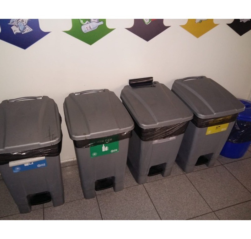 Renkli sıfır atık çöp kutuları uygulama resimlerine ve sıfır atık örnek resimlerine ulaşabilirsiniz.