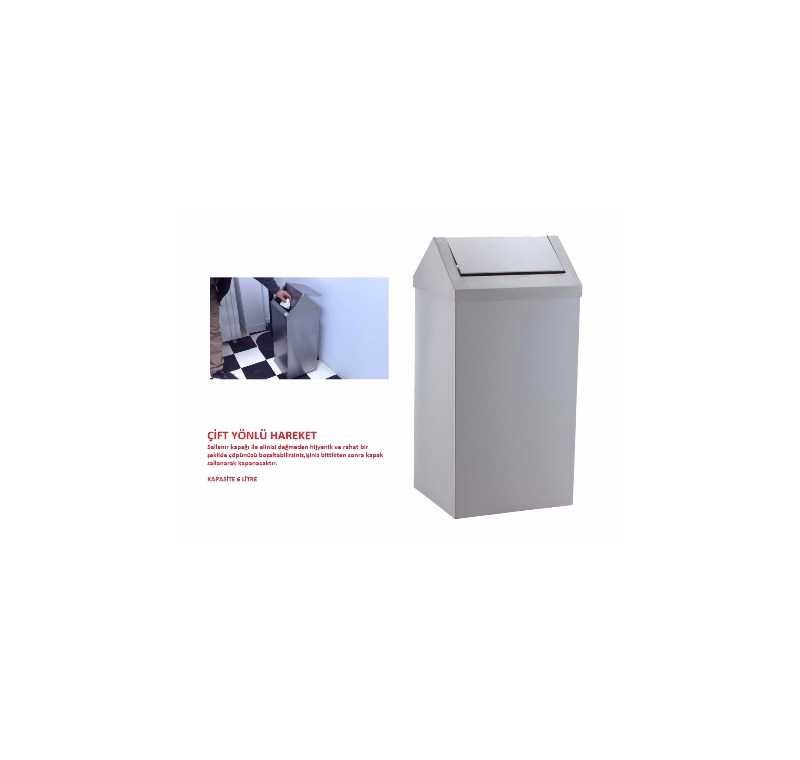 Sallanır Kapaklı Paslanmaz Çöp Kovası 54 litre ev,ofis,lokanta,hastane,otel,kafe,mutfak,lavabo,tuvalet,ürünlerimiz hijyen ve temizlik gerektiren tüm alanlarda yer almakta ve tamamına yakın oranda tüketiciler tarafından tercih edilmektedir